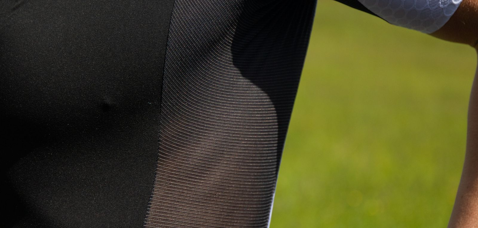 The three-dimensional texture of the material has been wind tunnel tested and optimized to delay turbulent boundary layer separation, reducing the cyclist's drag.